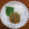茹で上がったらしっかり湯切りをして、どんぶりに盛ります。