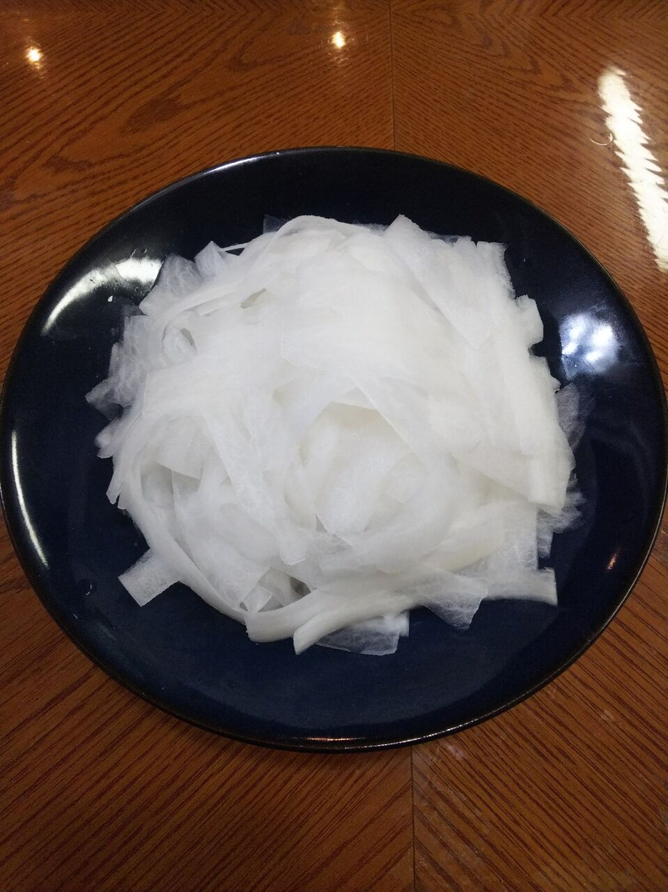大根は千切りではなく、あえてピーラーで削るだけにするのがポイントです。
