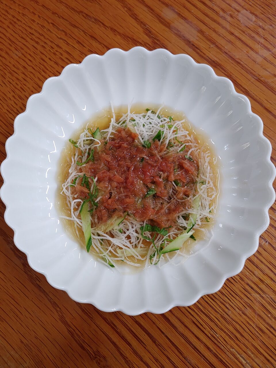 刺身盛り合わせに入ってる大根のつまを使ったサラダです。